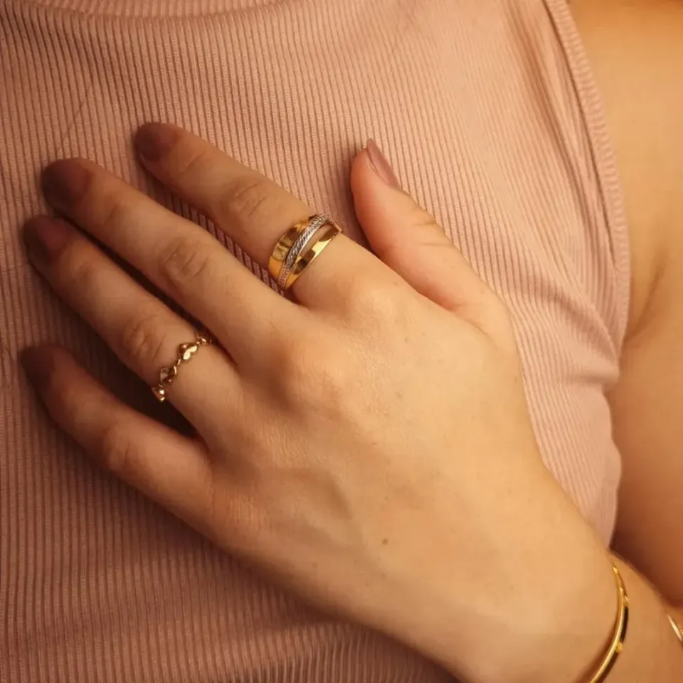 Anel Duplo Bolinhas com Zircônia...