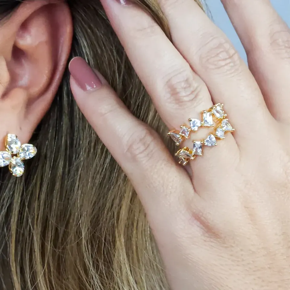 Anel Duplo Bolinhas com Zircônia...