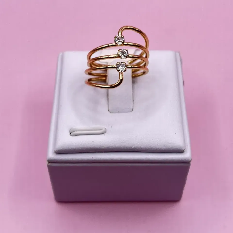 Anel Duplo Bolinhas com Zircônia...