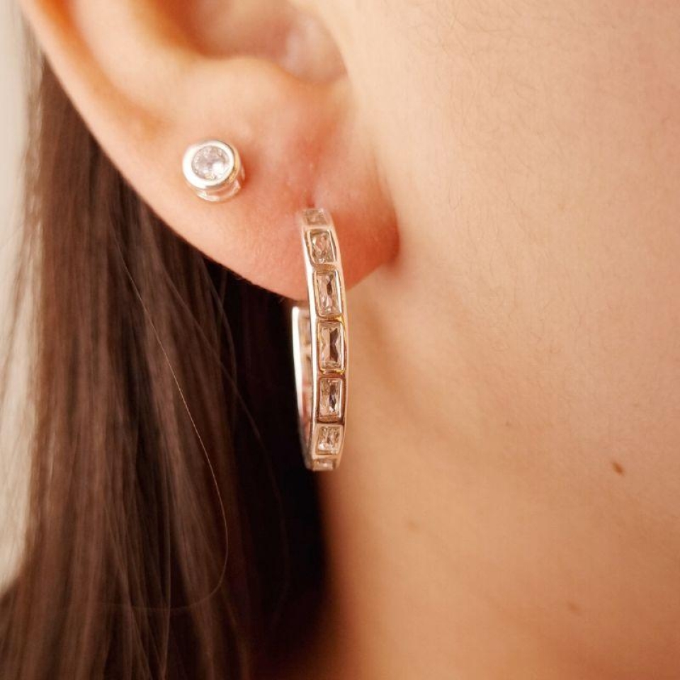 Brinco Minimalista em X com Zircônias em B...