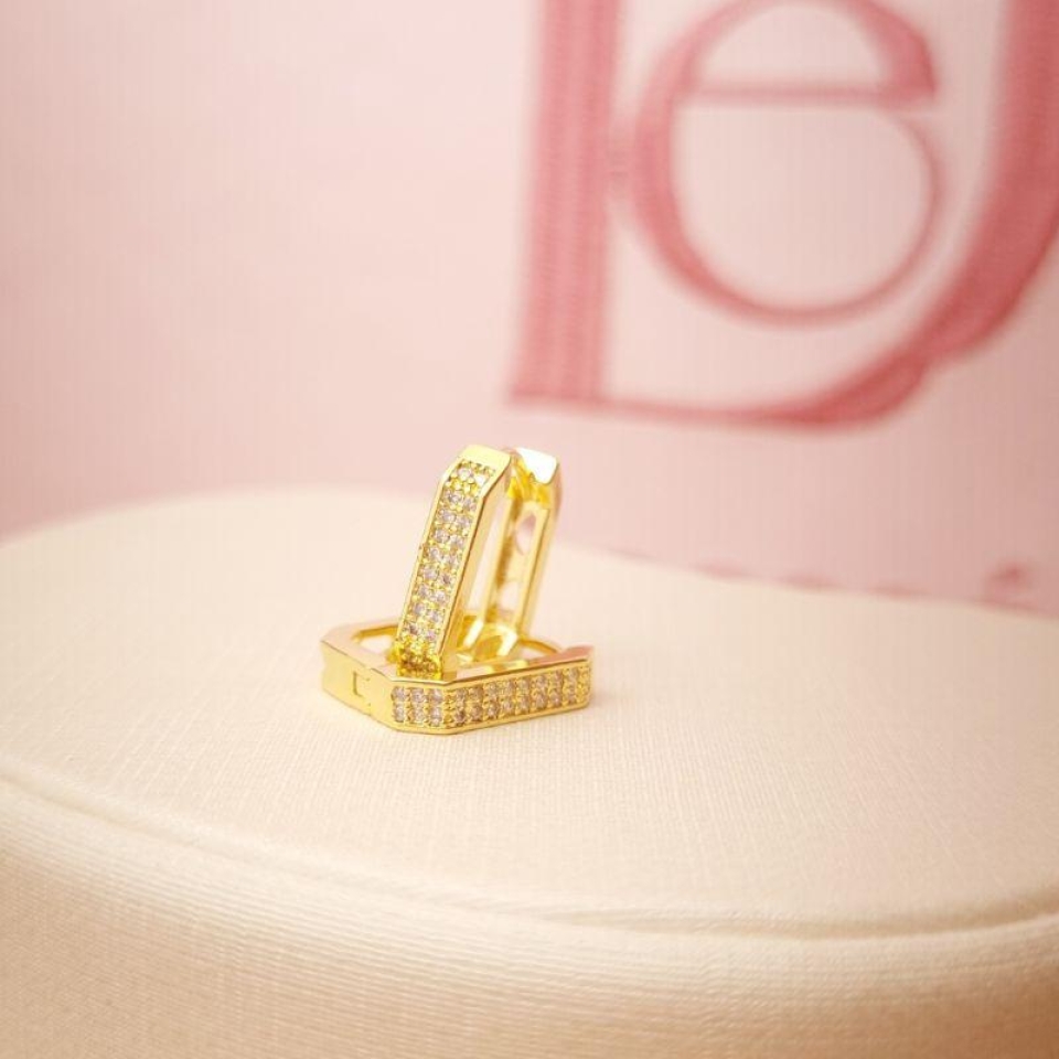 Brinco Minimalista em X com Zircônias em B...