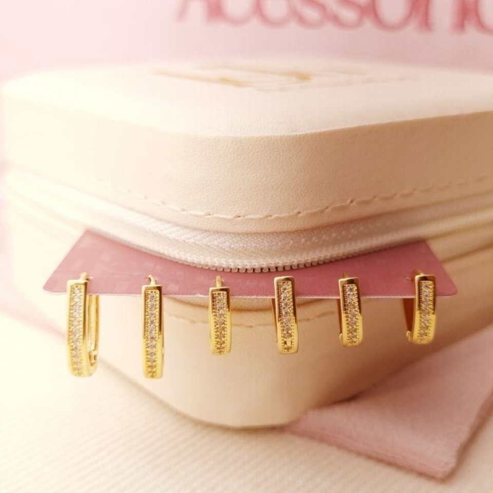 Brinco Minimalista em X com Zircônias...